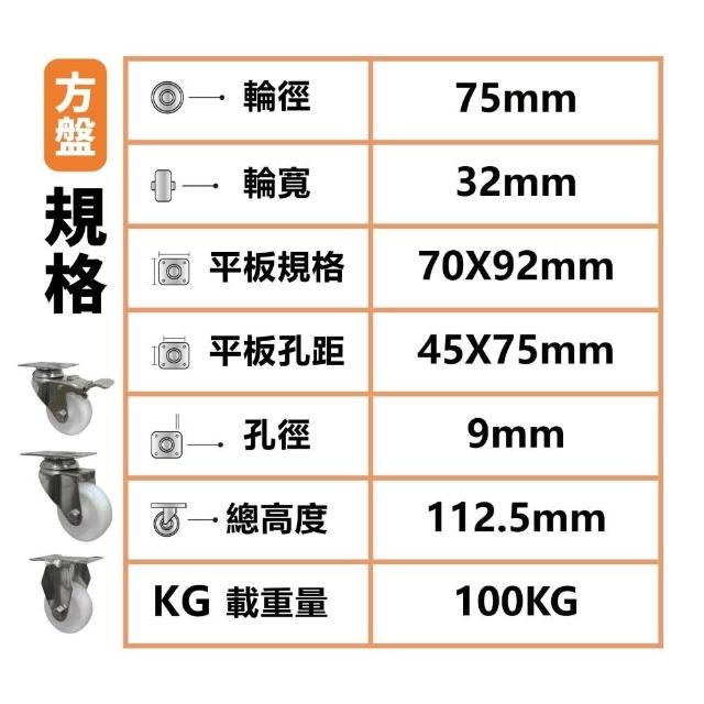 - 具旋轉功能、無煞車功能