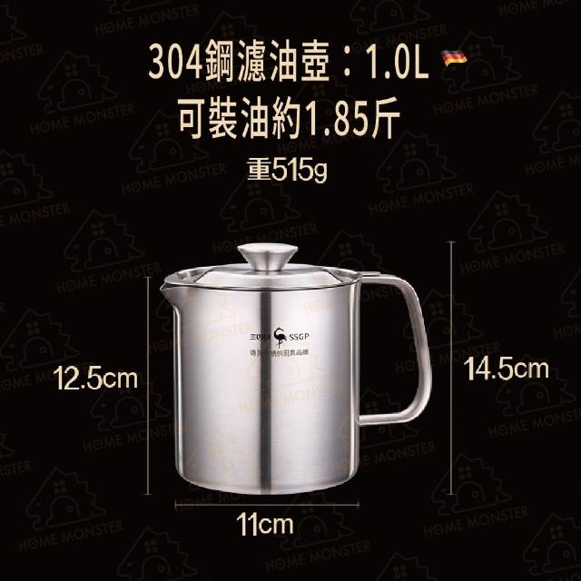 ﹝廚房必備﹞法蘭克福濾油壺 304不鏽鋼濾油壺 1L濾油壺 1000ml濾油器 1.5L炸豬油 油桶 油罐 油壺 炸豬油回收罐 瀝油壺 瀝油
