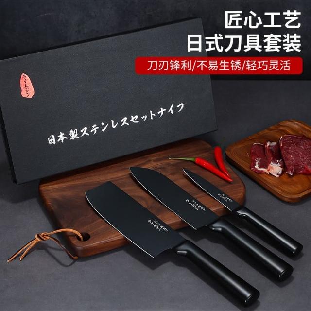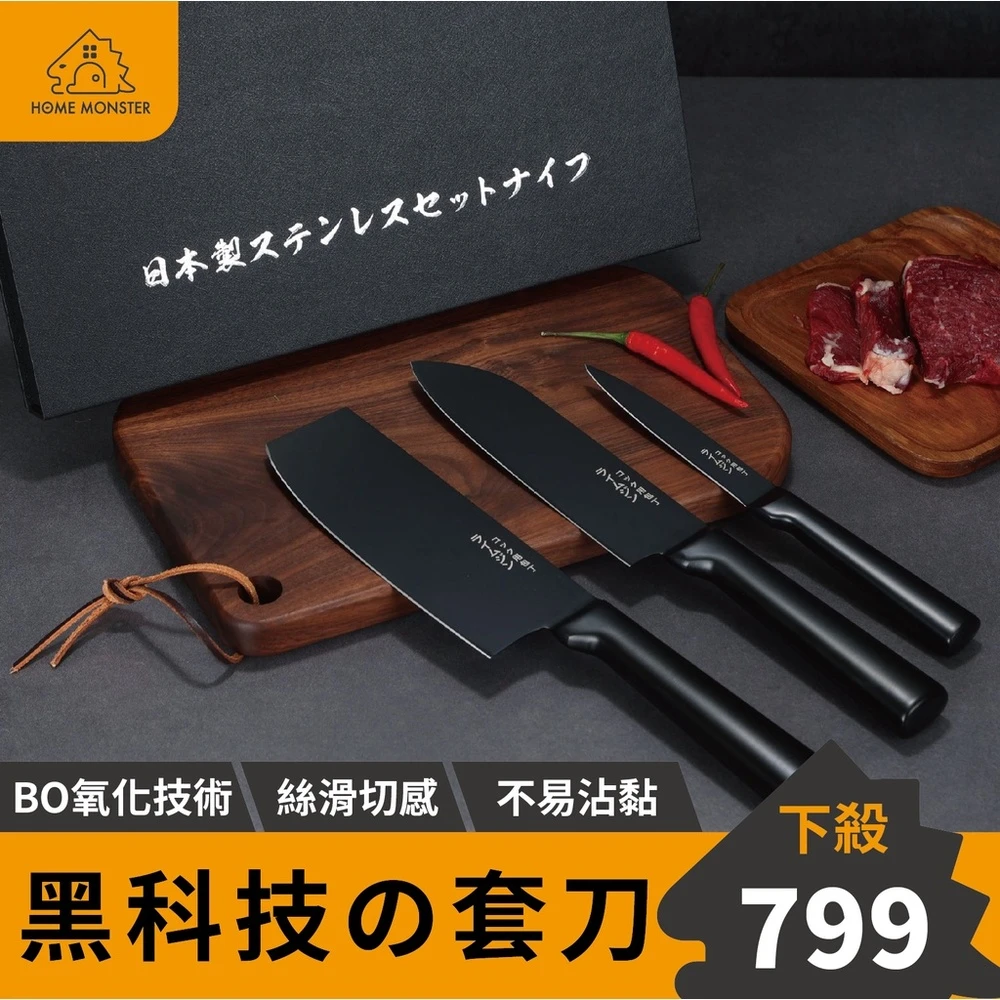 ﹝日本の原裝﹞ 極致黑鋒利不沾刀 女士刀具套裝三件組 水果刀 廚師刀 切菜刀 女士刀 不鏽鋼刀 切片刀 菜刀 鋼刀 料理刀 交換禮物 喬遷禮 搬家禮 禮盒