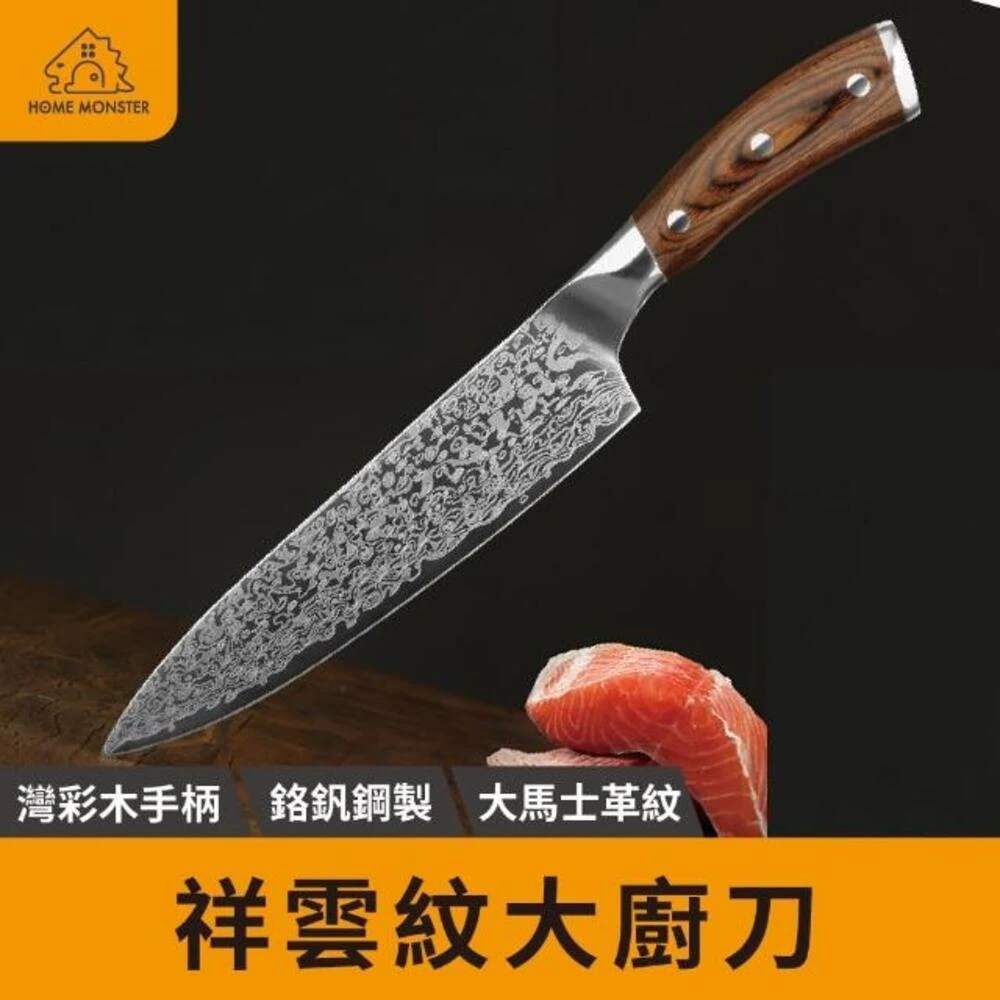 ﹝必備美刀﹞8吋廚師刀(贈專屬刀鞘) 大馬士革刀 菜刀 切菜刀 切肉刀 三德刀 刀子 廚師刀 日式除刀 壽司刀 生魚片刀 主廚刀 牛排刀