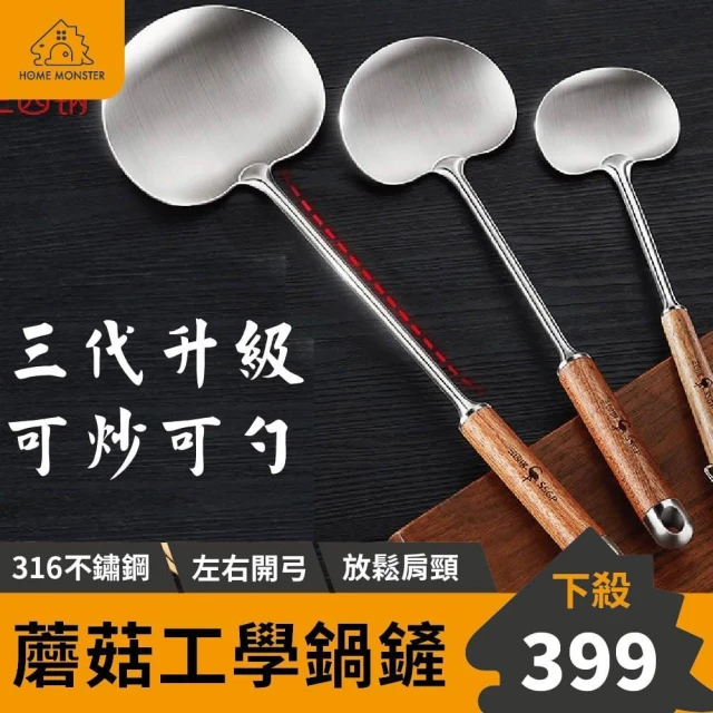 ﹝左右能鏟﹞316不鏽鋼蘑菇鍋鏟 人體工學鍋鏟 不鏽鋼鍋鏟 炒菜鏟 烹飪勺 粉扒 飯勺 煎鏟 炒飯鏟 鍋鏟 蘑菇鏟 鐵鍋