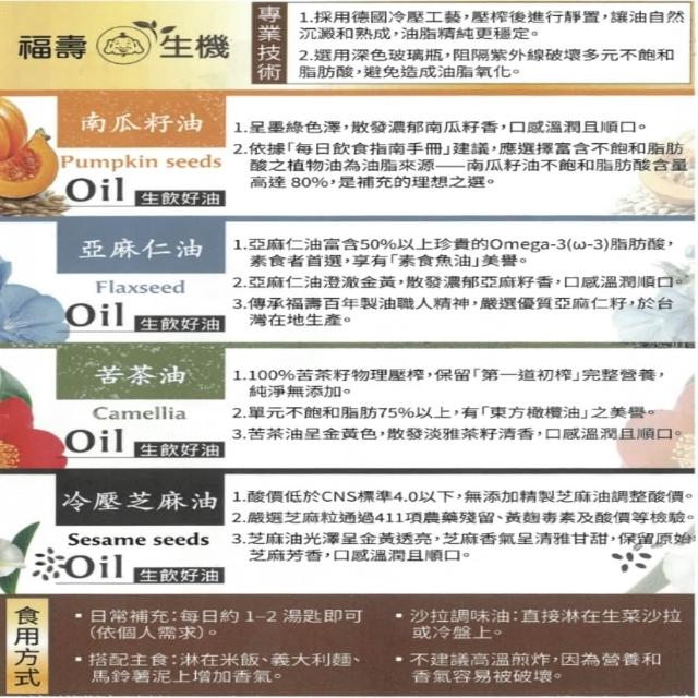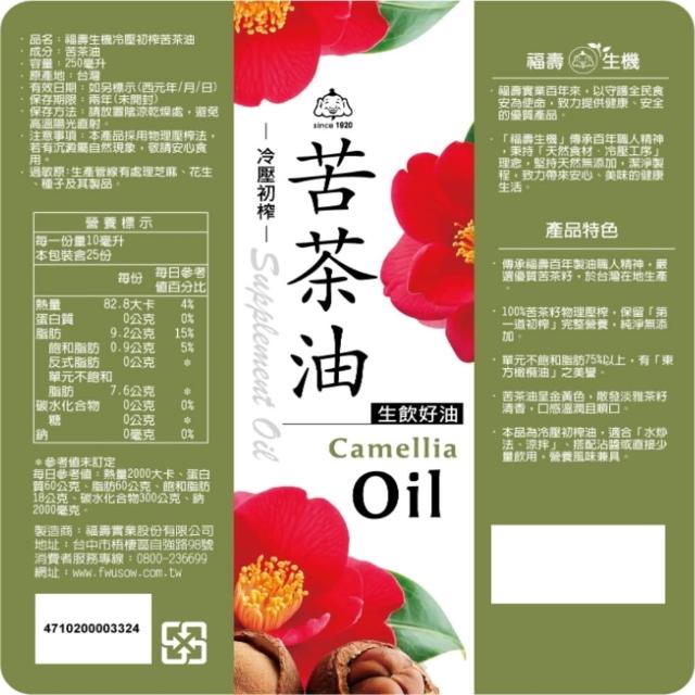 福壽福壽 冷壓初榨 苦茶油 生飲好油 250ML