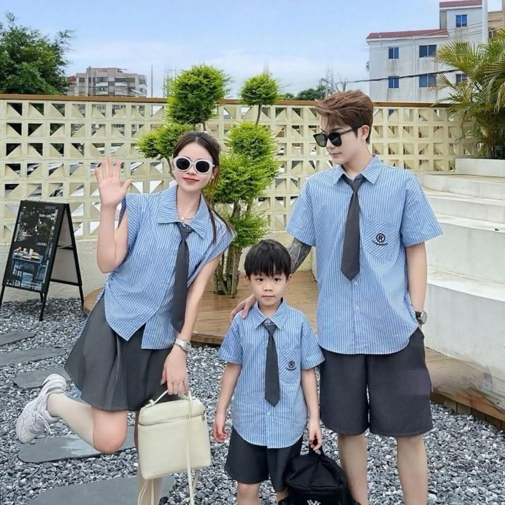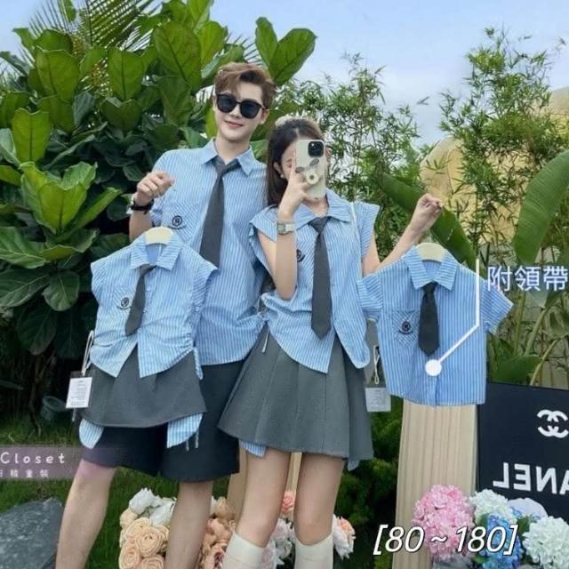 學院風直條襯衫親子裝-大人(親子裝)