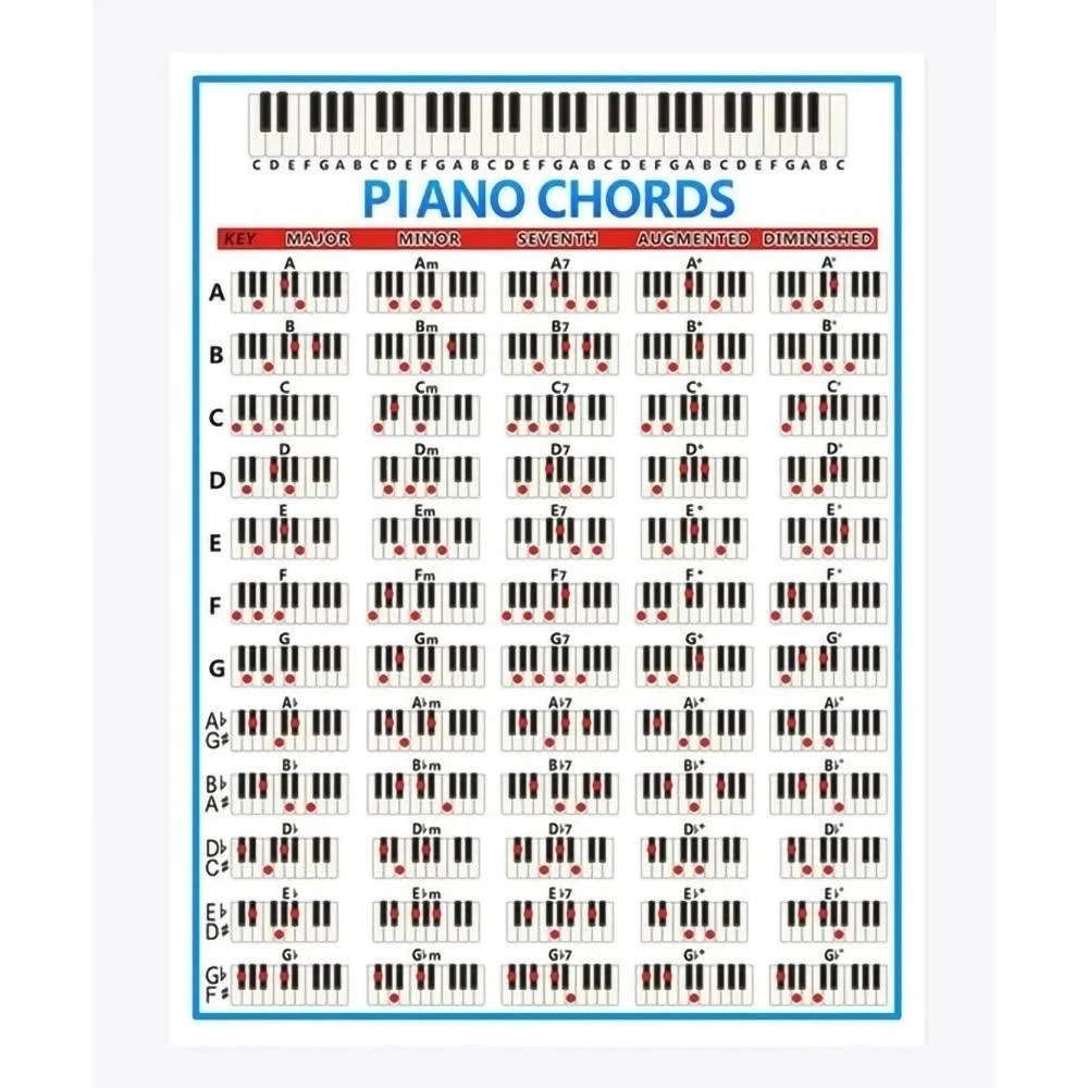 鋼琴 和弦指法圖 彩色 初學者 鍵盤鋼琴和弦譜 和弦表 指法表 鋼琴教材 鋼琴配件 鋼琴 電子琴 Piano Chord