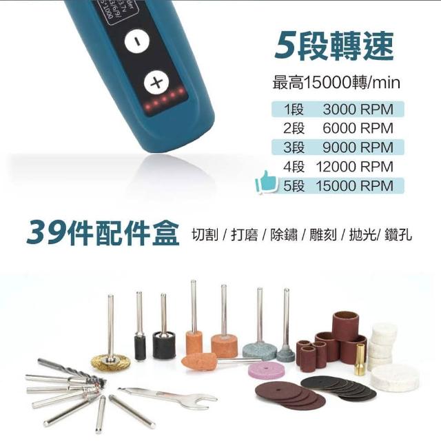 機械堂無線雕刻機 電鑽 刻磨機 五檔變速 切割機 小電鑽 電磨機 打磨機 拋光機鑽 贈39配件組