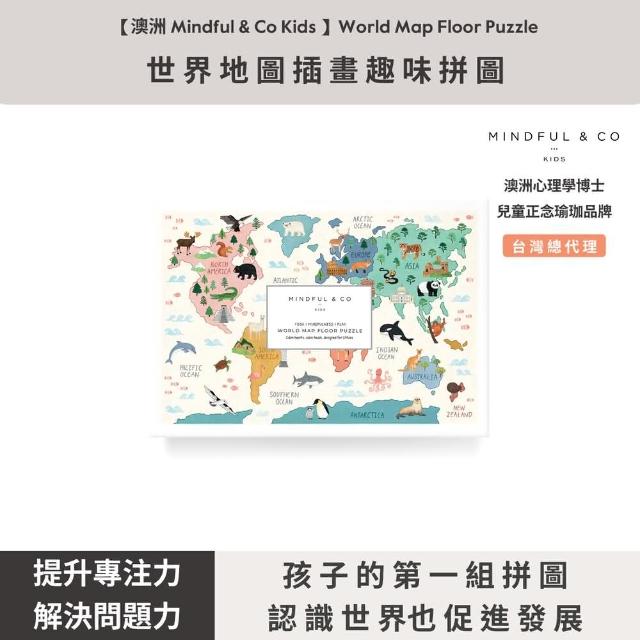 Mindful & Co Kids 澳洲 Mindful & Co Kids 世界地圖插畫趣味拼圖 World Map Floor Puzzle(兒童發展正念覺察專注精細動作)(活樂嶼TheWellery台灣總代理)