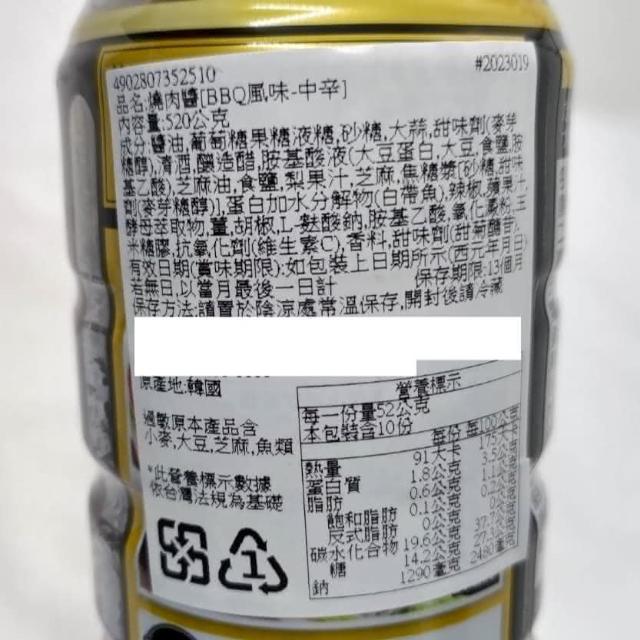 牡丹峰moranbong 韓HAN 烤肉醬-BBQ炭火中辛 520g/瓶