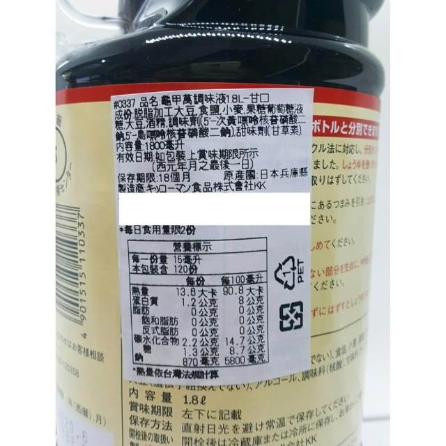 日本龜甲萬 醬油-甘口/濃口 1000ml/瓶龜甲萬醬油 KIKKOMAN
