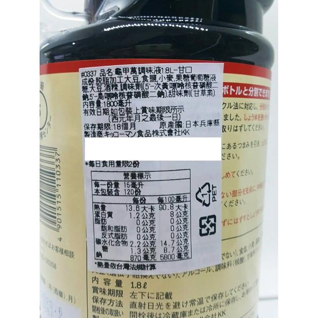 日本龜甲萬 醬油-甘口/濃口 1800ml/瓶龜甲萬醬油 KIKKOMAN