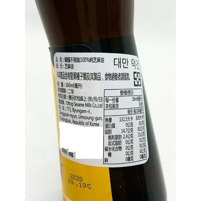 韓國不倒翁100%純芝麻油/CJ芝麻油 500ml/瓶九鬼胡麻油 九鬼芝麻油 芝麻油 芝麻香油 香油
