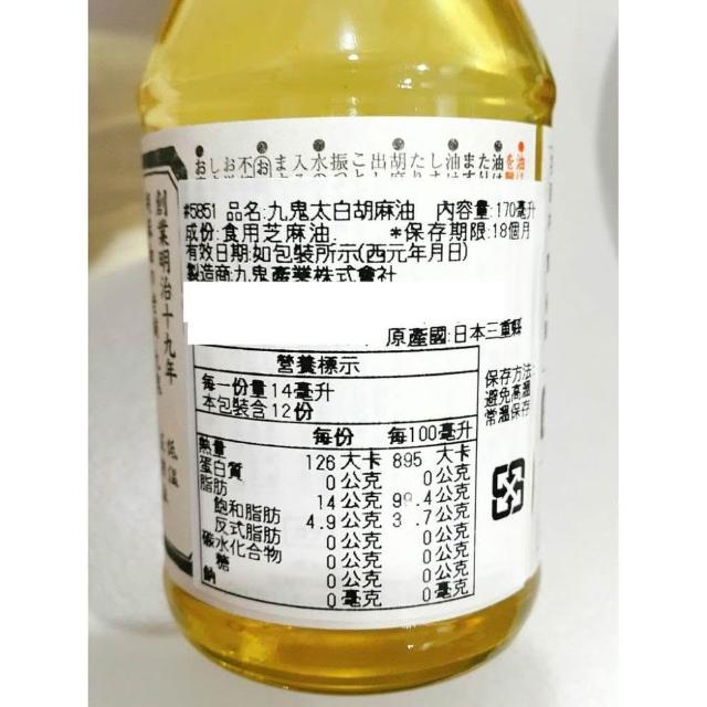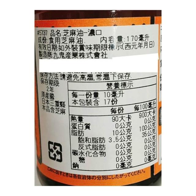 九鬼 濃口胡麻油 170ml/瓶太白胡麻油 黑芝麻油 九鬼產業 香油 麻油 日本麻油寶寶香油 芝麻香油