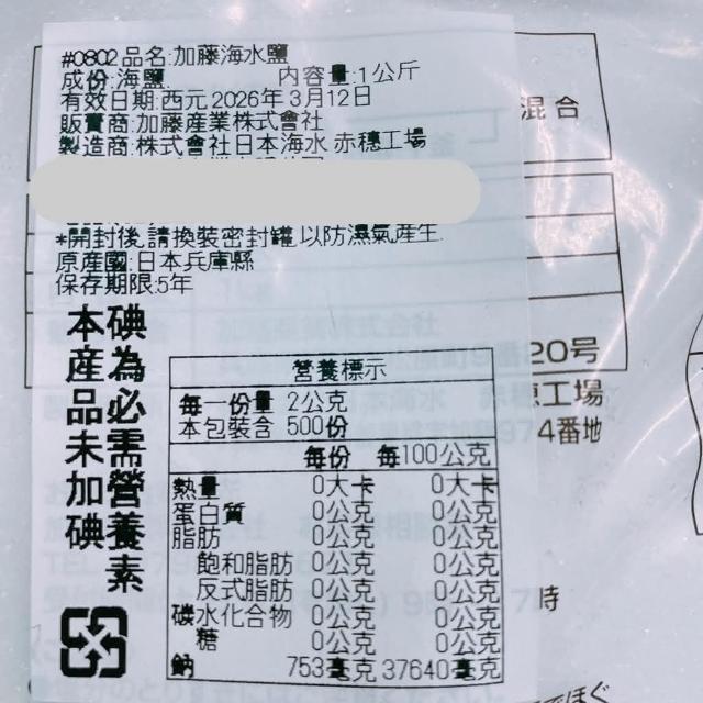 KANPY加藤 海水鹽巴 1KG/包日本鹽 粗鹽 日本海鹽