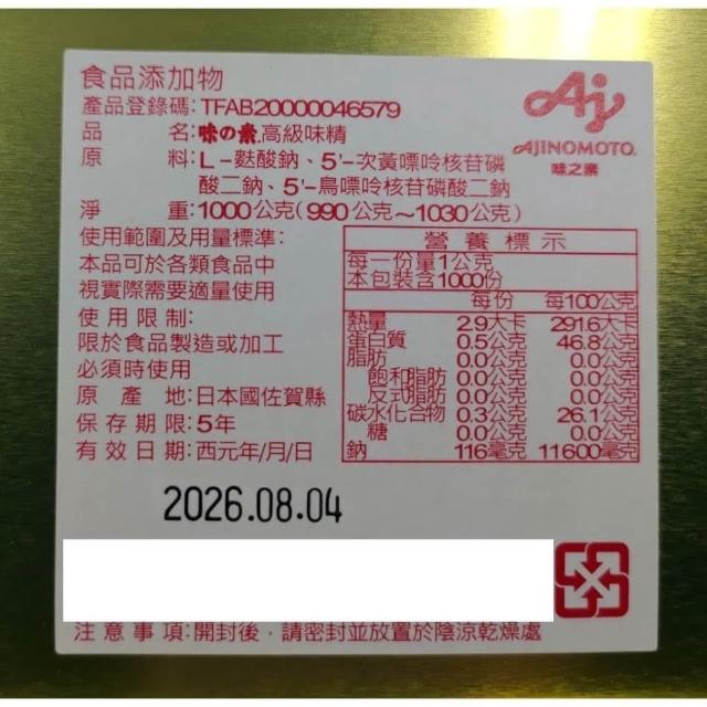 味之素 高級味精 1kg/袋Ajinomoto 日本製 高級味素 味之素金罐味精 日本味素 日本味精