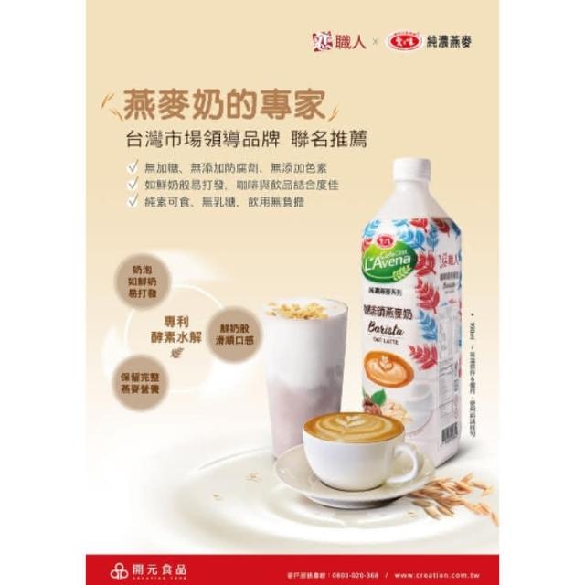 愛之味 純濃燕麥 咖啡師燕麥奶 990ml/瓶開元燕麥奶 素食 燕麥 戀職人 植物奶 燕麥拿鐵