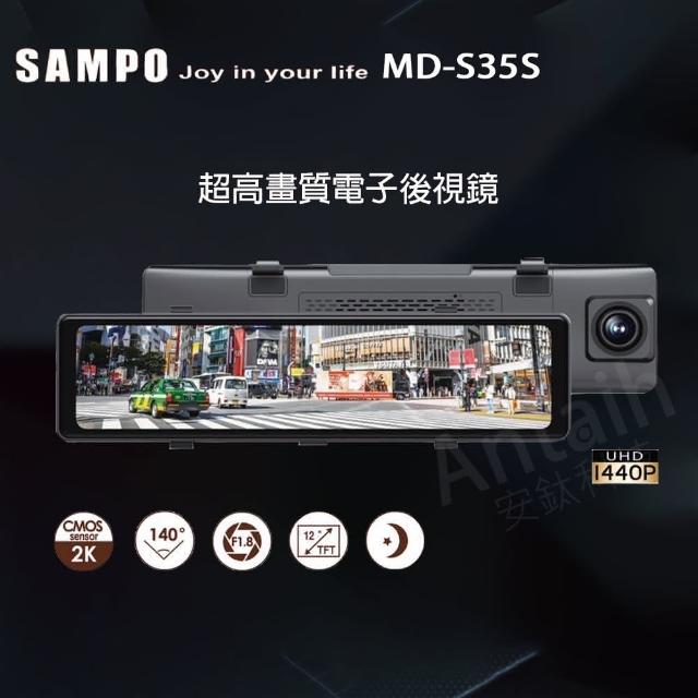 SAMPO 聲寶MD-S35S2024新款行車記錄器 前後雙錄 GPS測速 12吋電子後視鏡 2K高畫質 贈32G記憶卡