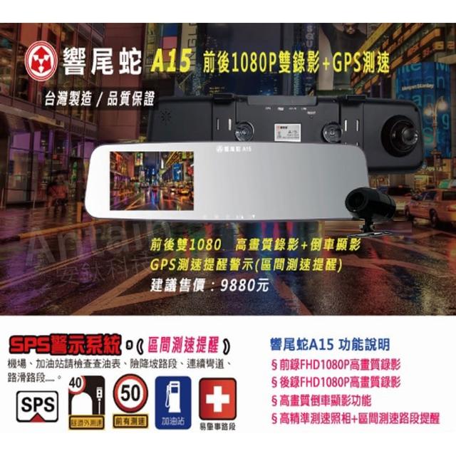 響尾蛇A15響尾蛇 A15 GPS測速行車記錄器 前後雙錄1080P 5吋螢幕 區間測速 科技執法 贈32G記憶卡