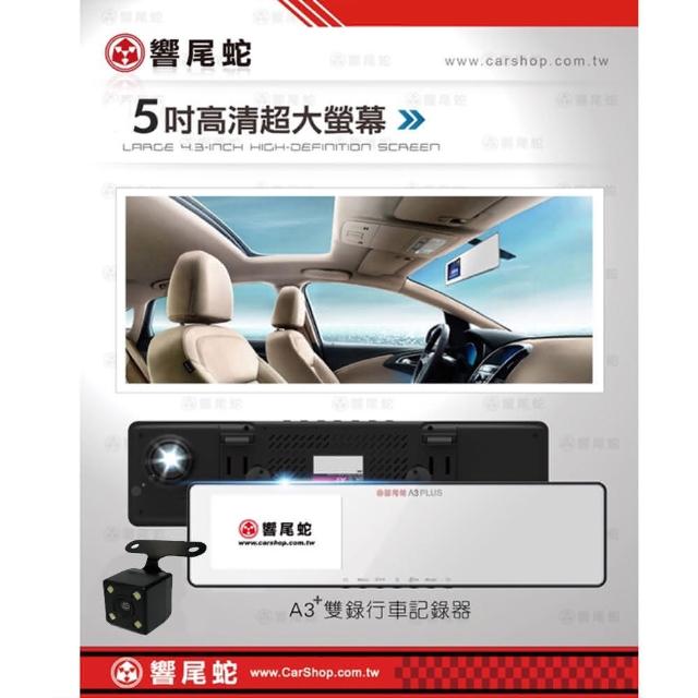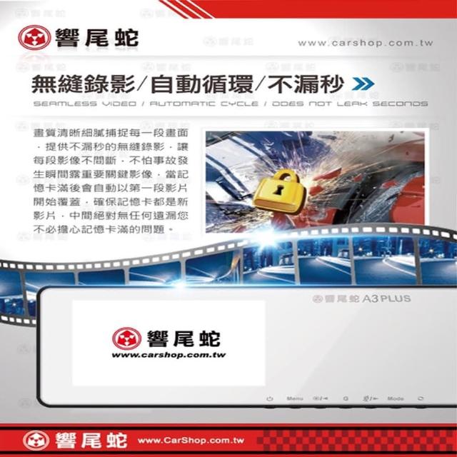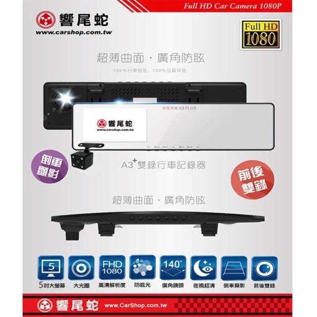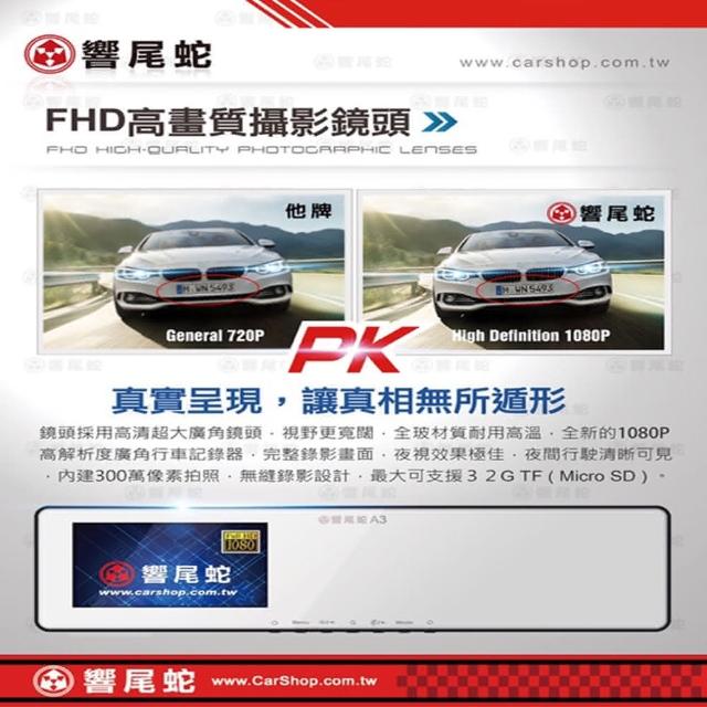 響尾蛇A3PLUS行車紀錄器 超薄曲面 前後雙錄 廣角後視鏡 贈32G記憶卡
