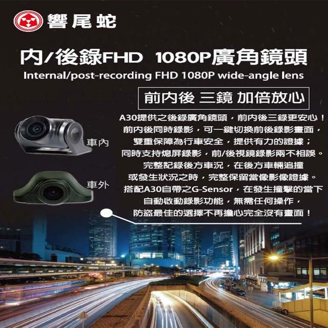 響尾蛇A30三錄版2024商用車首選 高畫質行車紀錄器 前後雙錄 車內錄影 Sony 2K畫質 BSD 盲區監測 WIFI GPS測速 贈64G記憶卡