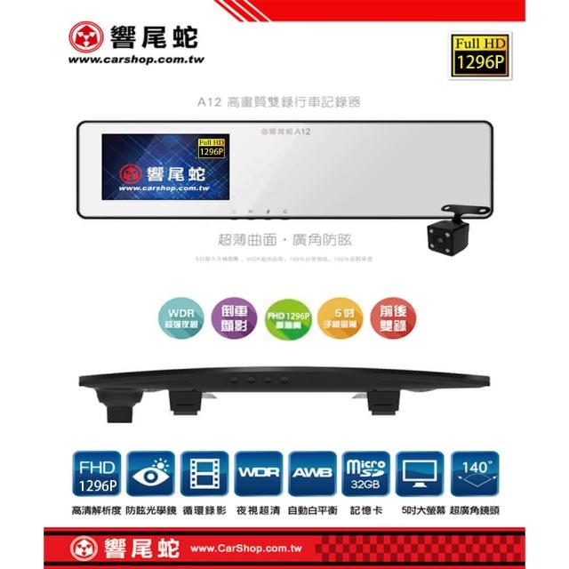 響尾蛇A122024新款 行車紀錄器 超薄曲面 前後雙錄 廣角後視鏡 停車監控 1296P 贈32G記憶卡