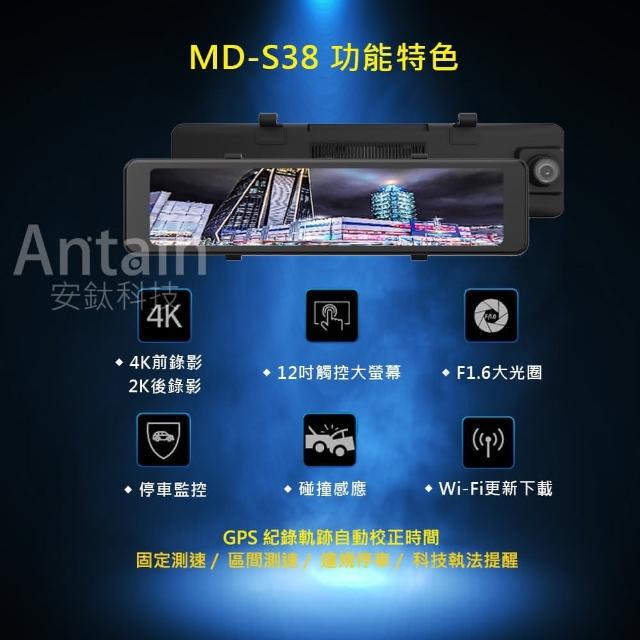 SAMPO聲寶MD-S38S(台灣熱銷品牌 前後雙錄4K+2K高畫質SONY Starvis行車記錄器 WIFI+OTA線上更新 GPS測速提醒 12吋電子後視鏡 贈64G記憶卡)