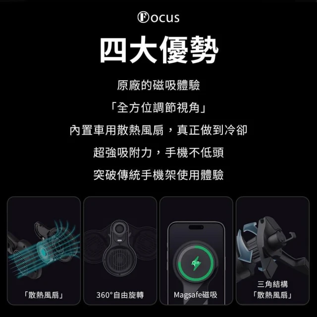 FOCUSFocus Magsafe 磁吸 F2-2 Qi2 15W 無線充電 磁吸 車用 無線充支架 快充