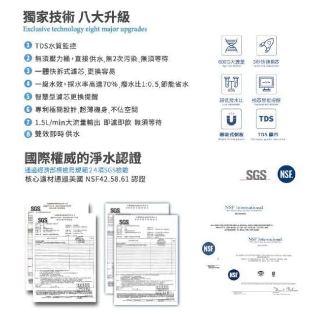 AQUAS 淨工坊A16 直輸型雙效節能RO純水機 A16-600G 純白款 自帶TDS水質檢測省錢王-專業快速安裝