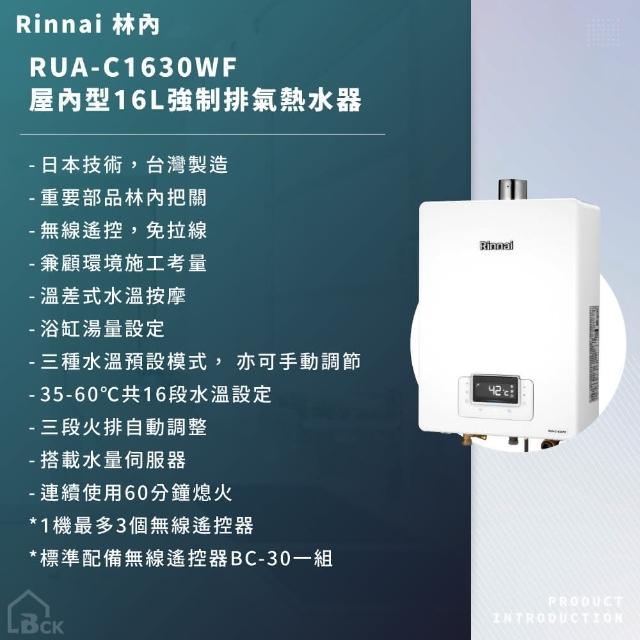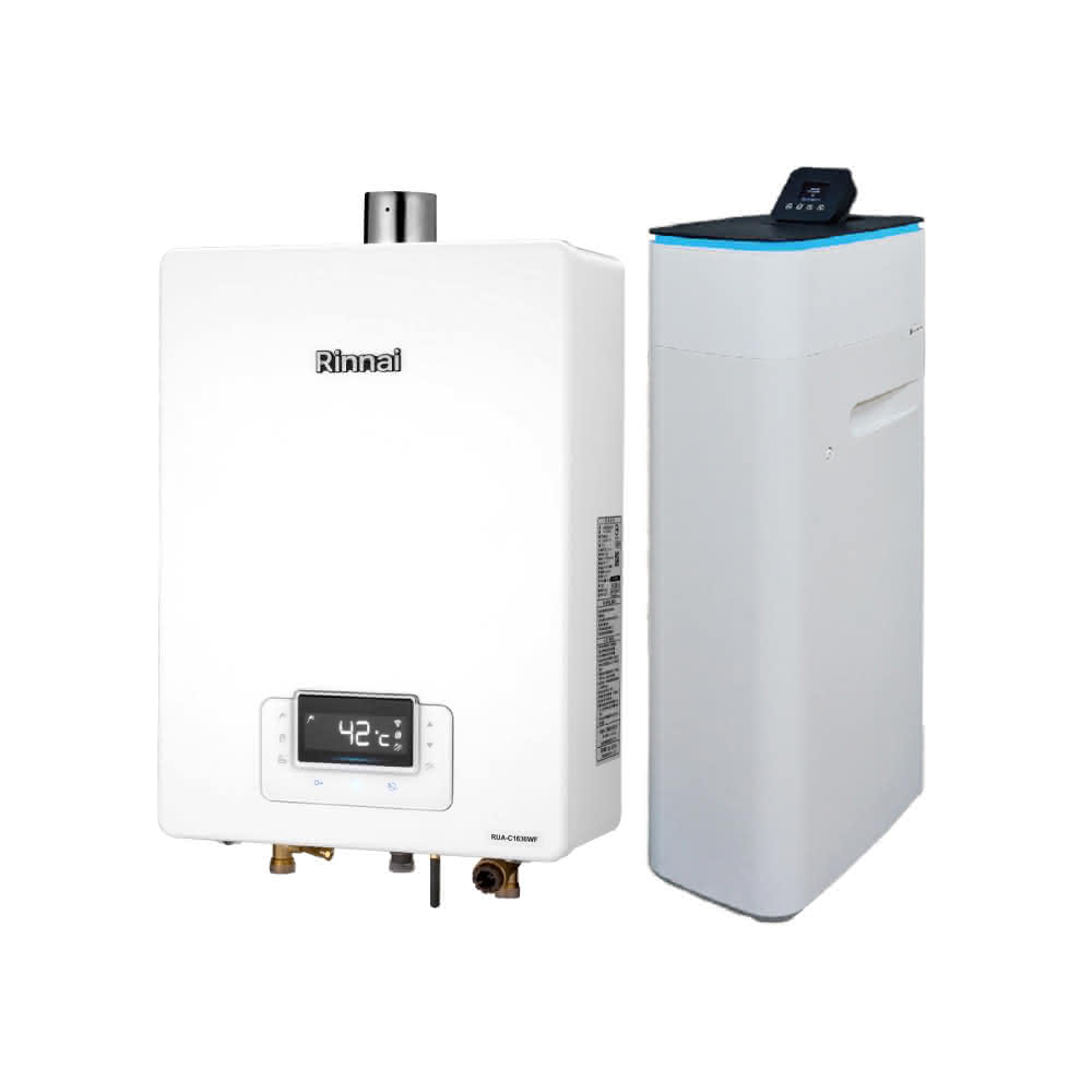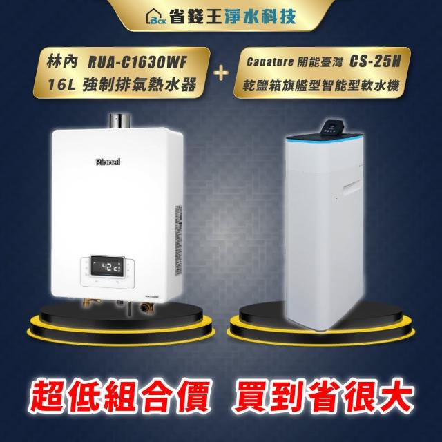 林內林內RUA-C1630WF 16L屋內型強制排氣熱水器 NG1/LPG 搭配 Canature 開能臺灣 CS-25H 乾鹽箱智能型軟水機省錢王-專業快速安裝