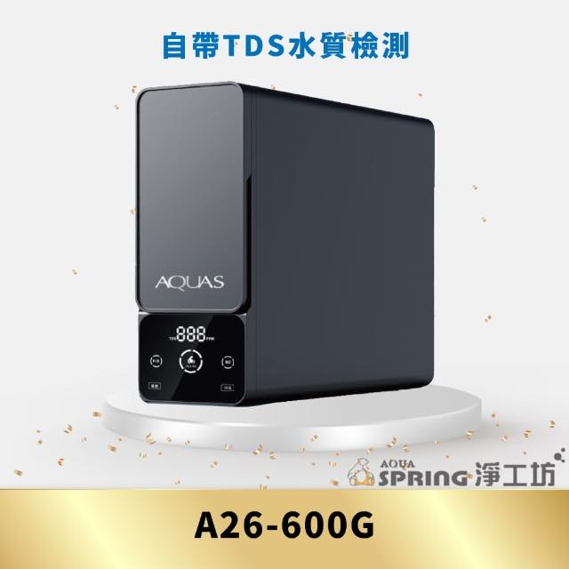 AQUAS 淨工坊A26 直輸型雙效節能RO純水機 A26-600G 尊爵黑 自帶TDS水質檢測 純水回沖專利省錢王-專業快速安裝