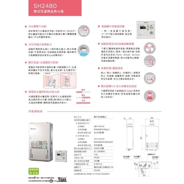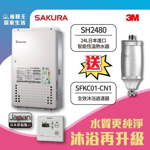 SAKURA 櫻花SAKURA 櫻花牌 SH2480 24L日本進口智能恆溫熱水器 3M 全效沐浴過濾器