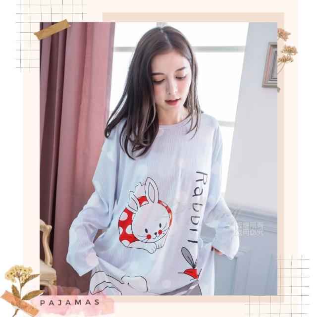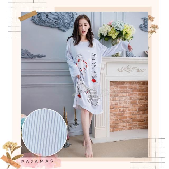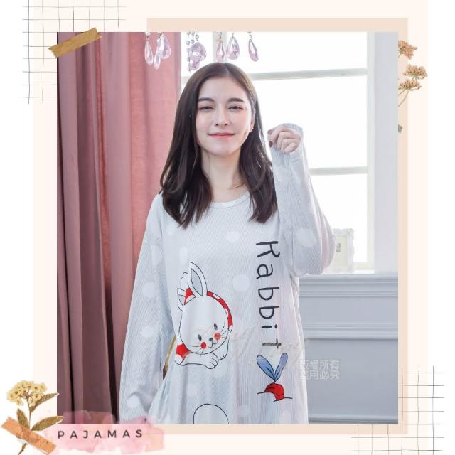 lingling全尺碼-瞌睡兔蘿蔔直紋長袖連身睡衣 居家服睡裙(PA4306-共2色)