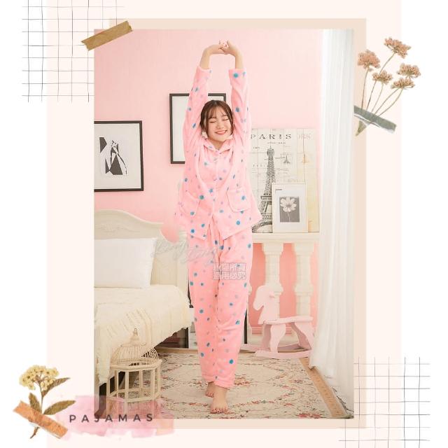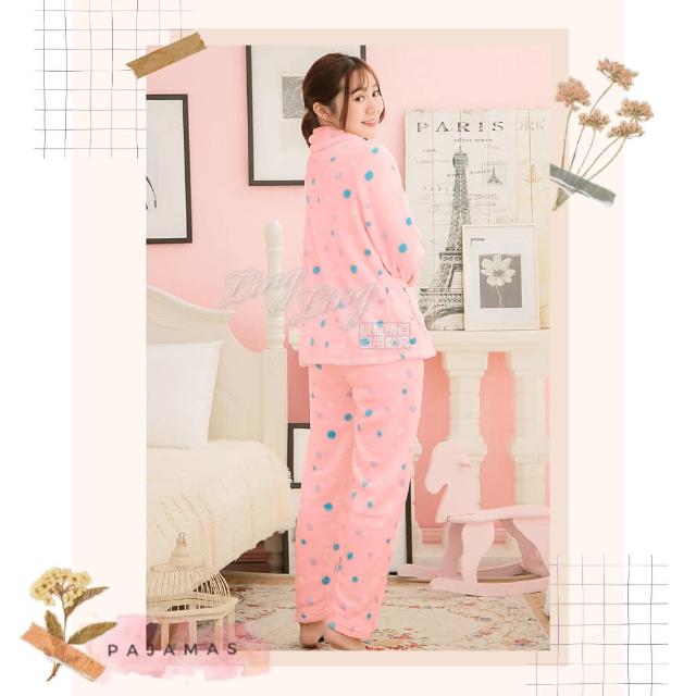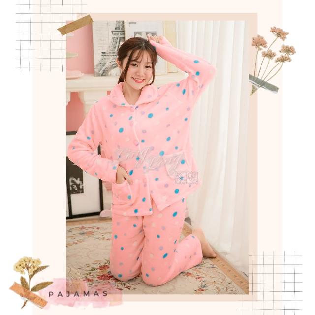 lingling全尺碼-彩色點點水貂絨全開釦長袖二件式睡衣組 居家服成套睡衣(PA3847-浪漫淺粉)