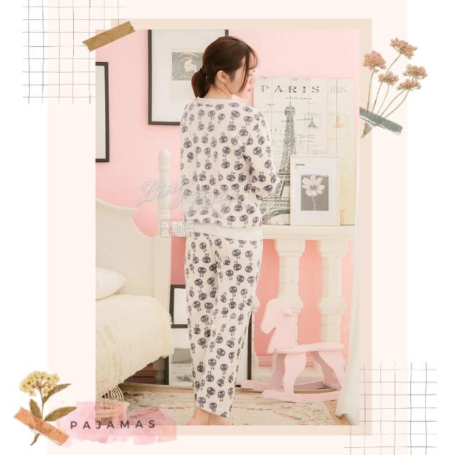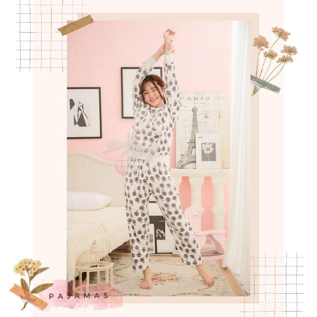 lingling全尺碼-Q版兔子水貂絨長袖二件式睡衣組 居家服成套睡衣(PA3907-溫柔米白)