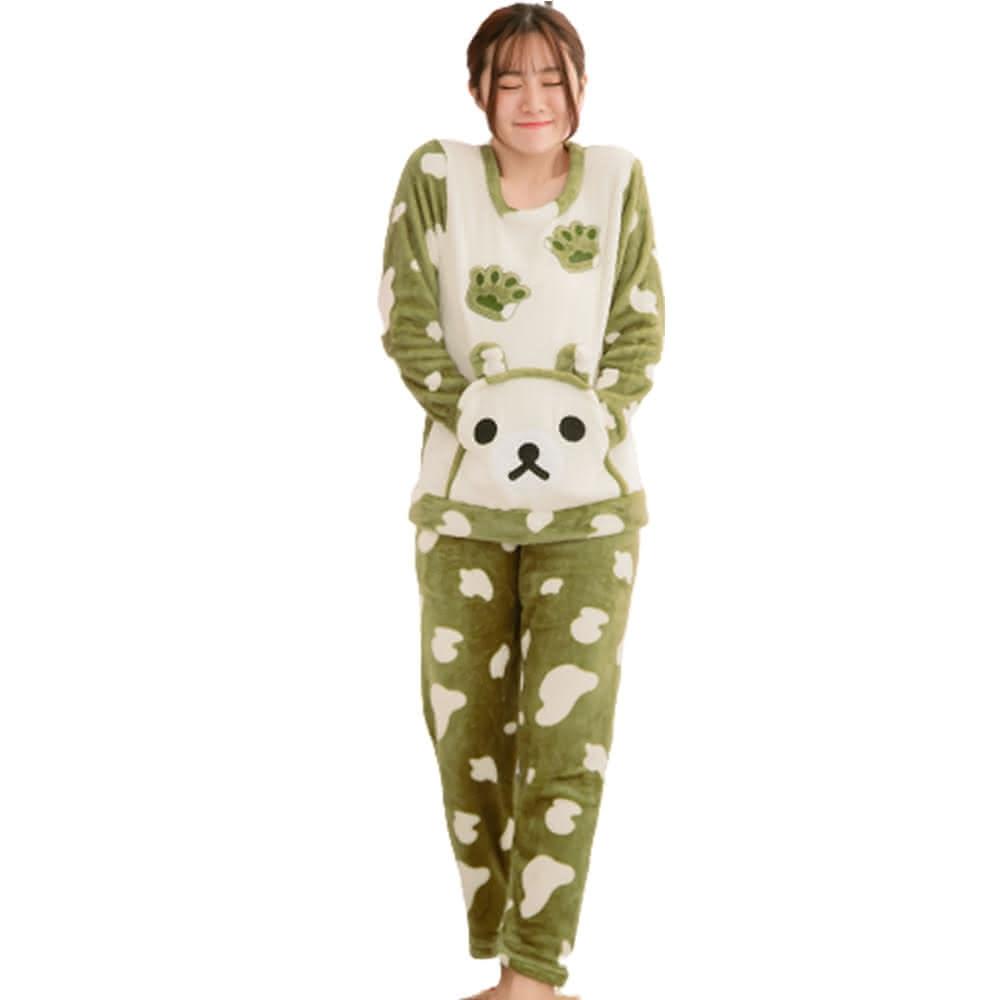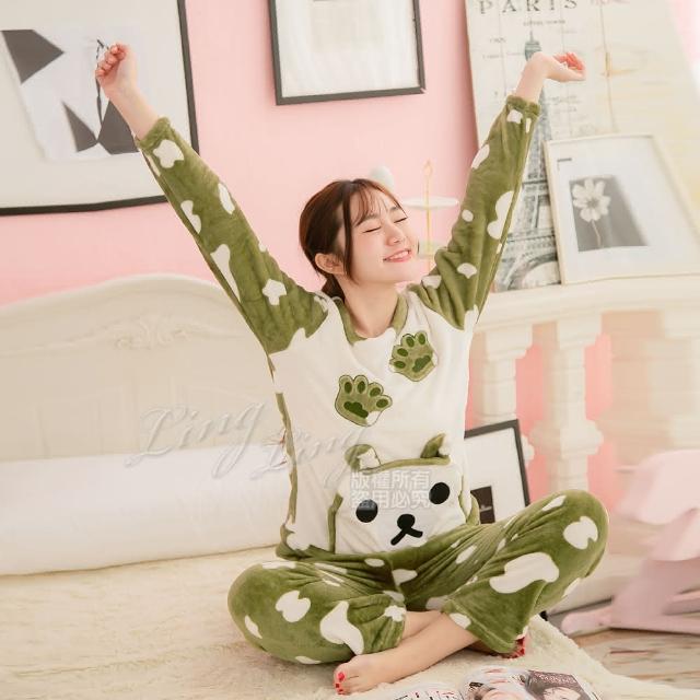 lingling全尺碼-可愛動物水貂絨長袖二件式睡衣組 居家服成套睡衣(PA3902-個性軍綠)
