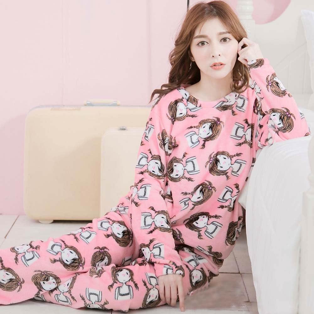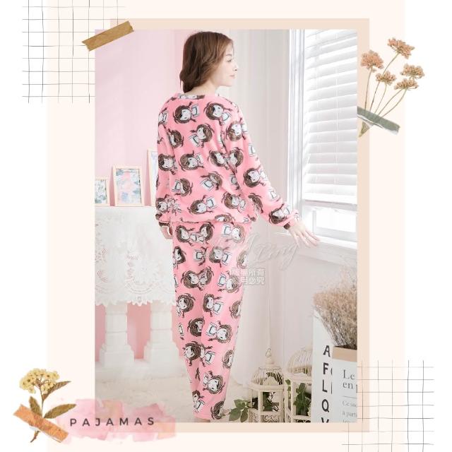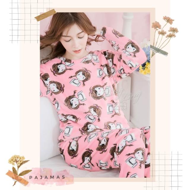 lingling全尺碼-Q版娃娃水貂絨長袖二件式睡衣組 居家服成套睡衣(PA3589-柔感粉)