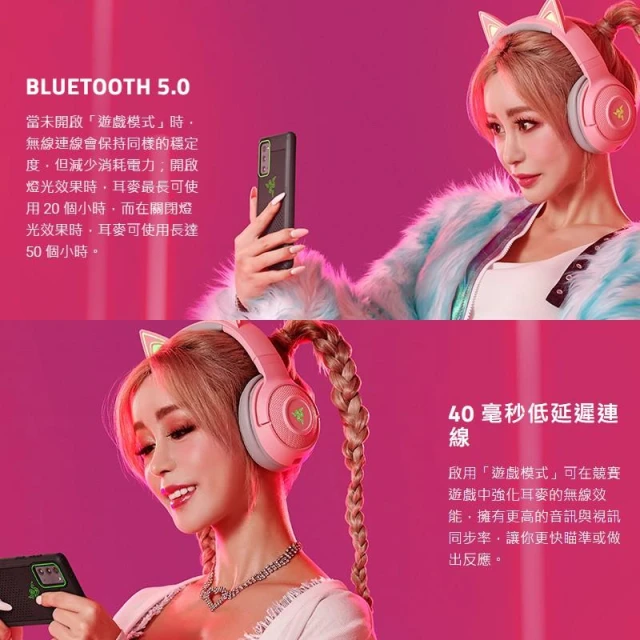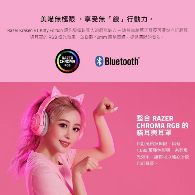 Razer 雷蛇Razer 雷蛇 Kraken Kitty V2 BT-北海巨妖 藍芽耳機 遊戲耳機 無線耳機 貓耳 光華