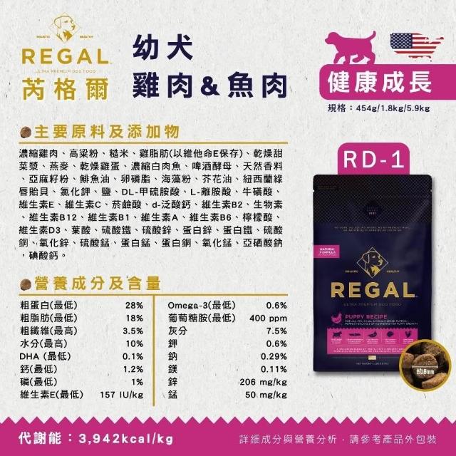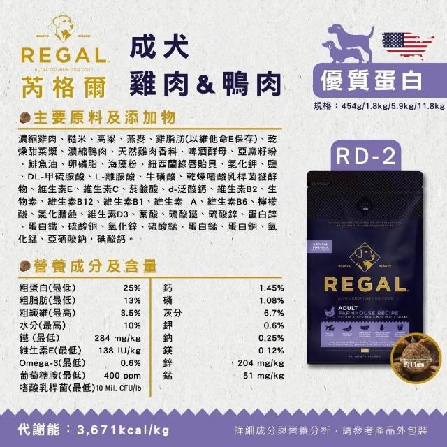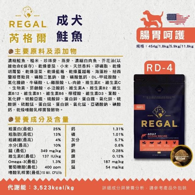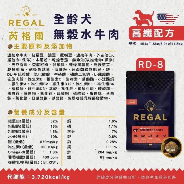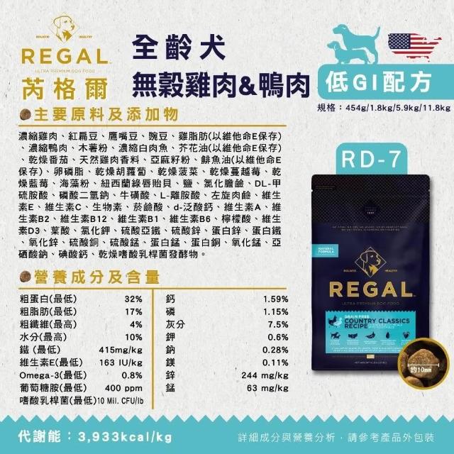 REGAL 芮格爾天然犬糧 5.9kg/11.8kg 低穀狗糧 有穀狗糧 無榖飼料(狗飼料 犬糧 高蛋白 低灰分 維護腸道 維持關節靈活)