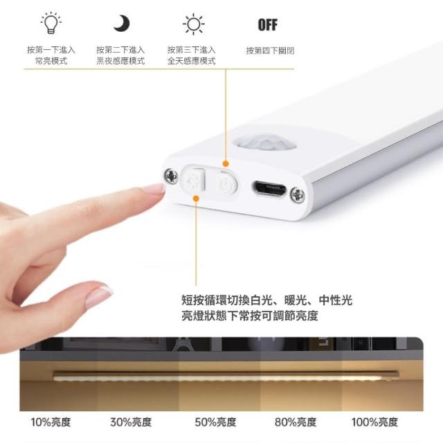 Mufasa人體智能感應燈 30cm(LED燈條 磁吸感應燈 LED感應燈 小夜燈 走廊燈 櫥櫃燈 氛圍燈 展示燈 床頭燈 白光)