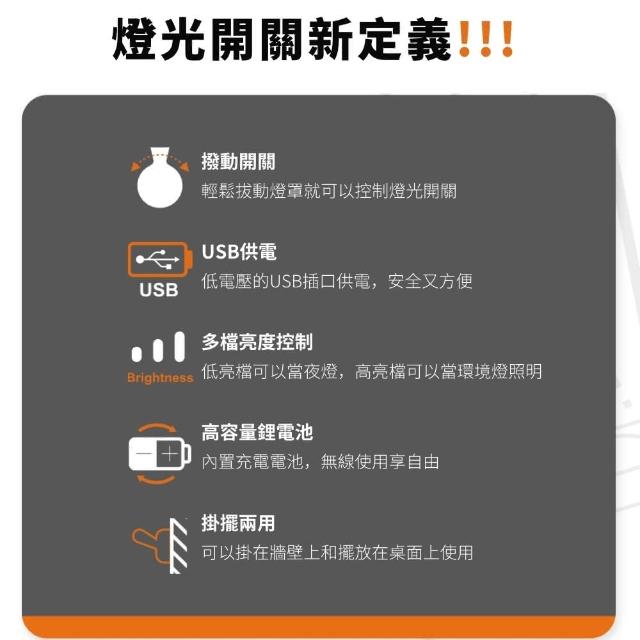- 輕鬆拔動燈罩就可以控制燈光開關