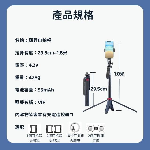 Mufasa160cm 單補光燈+遙控器+鋁合金金管 藍芽自拍棒 補光自拍棒 自拍腳架 手機直播架 自拍架 直播燈 自拍神器 補光燈 四腳超穩