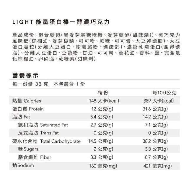 Body GoalsBody Goals Light 能量蛋白棒 12g蛋白質 減糖90% 高纖無麩質 健身 飲控