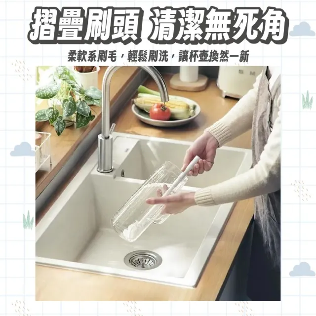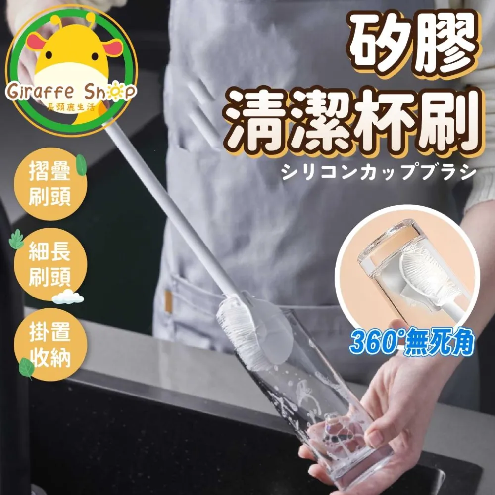 矽膠杯刷 長柄杯刷 杯刷 可摺叠刷頭 清潔刷 矽膠杯刷 奶瓶刷 水杯刷 矽膠洗清杯刷 360°全方位清潔刷