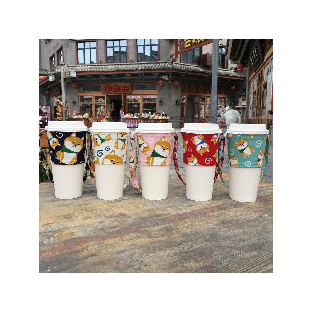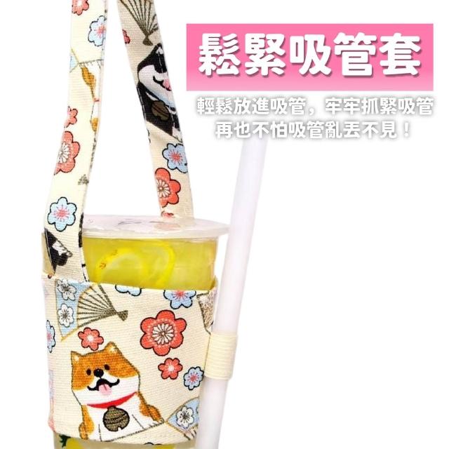 犬杯套【含吸管套 飲料杯套 吸管杯套 婚禮小物 飲料杯套 環保提袋 飲料袋 環保袋 提帶