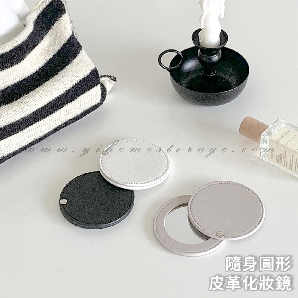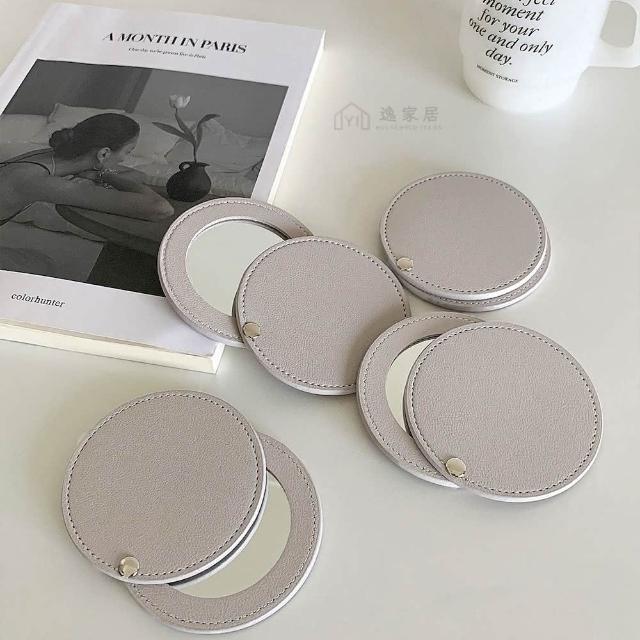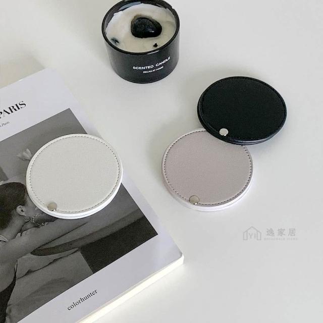 逸家居 隨身圓形皮革化妝鏡ins小鏡子 隨身鏡 圓形小化妝鏡 韓國 皮質鏡 簡便攜帶