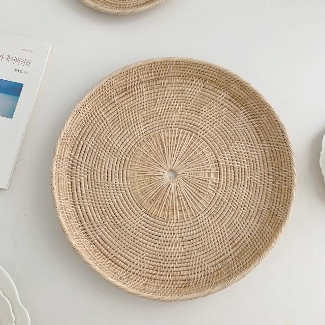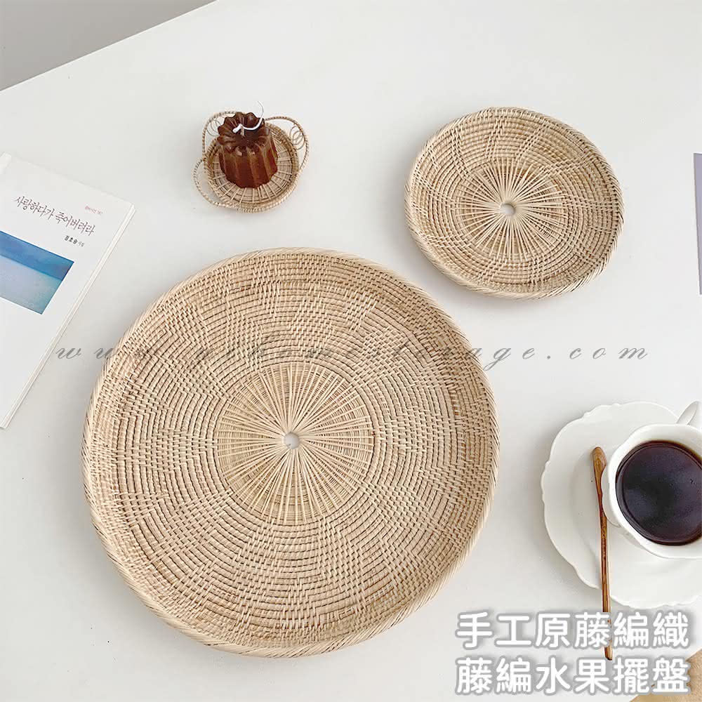 逸家居 藤編水果擺盤-大款30cmins 水果盤 無印 托盤 收納盤 手工編織 擺盤 居家擺飾 自然藤編盤