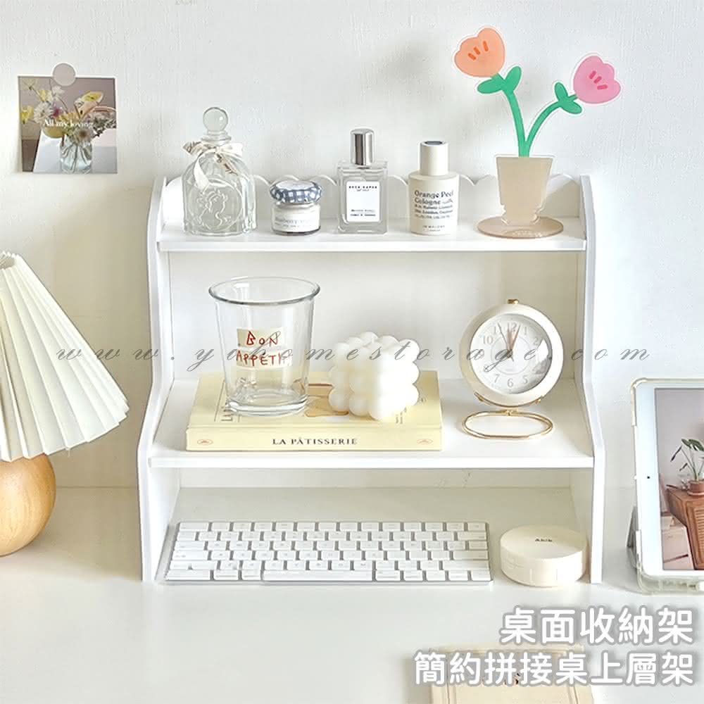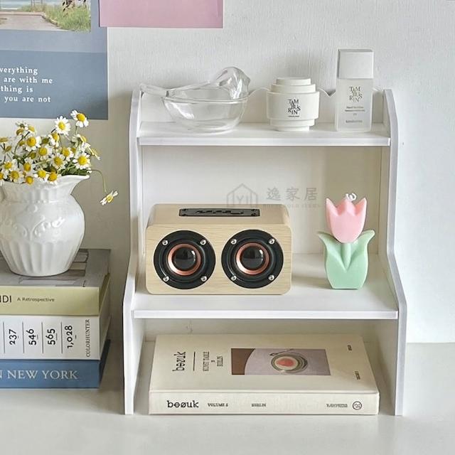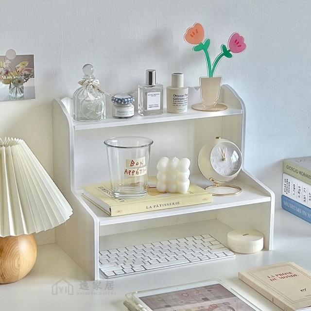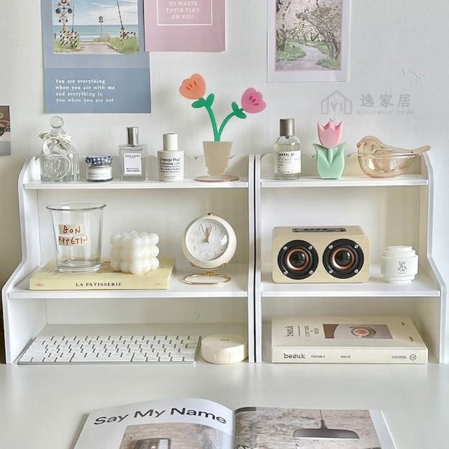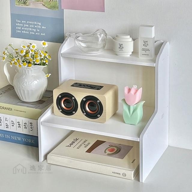 逸家居 桌面雙層置物架-大款桌上收納架 白色梯形收納架 書架 梯形置物架 桌面增高架 桌上置物架