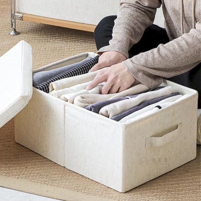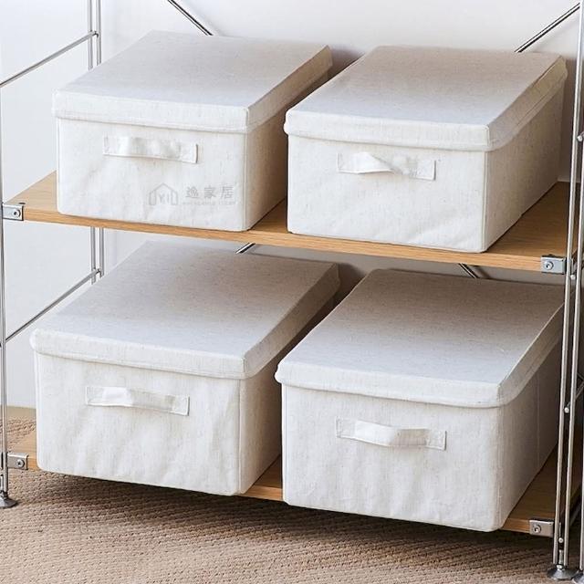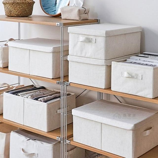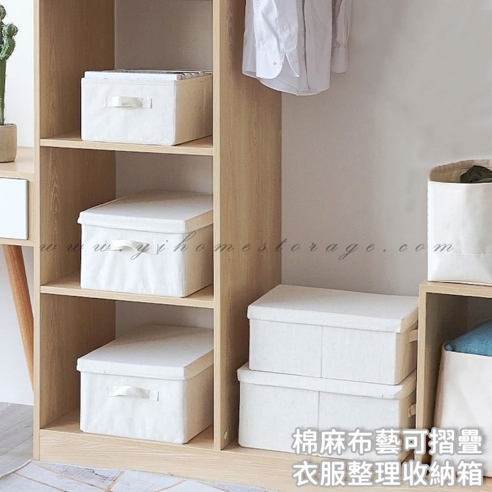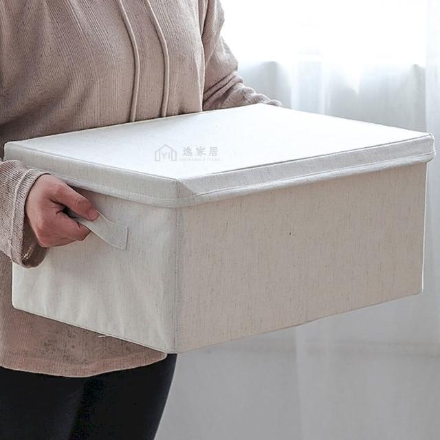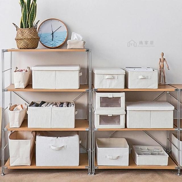逸家居 棉麻布衣服收納箱-中款含蓋含蓋 透窗式 布藝 抽屜式 衣櫃收納盒 衣櫥整理箱 雜物整理 可摺疊