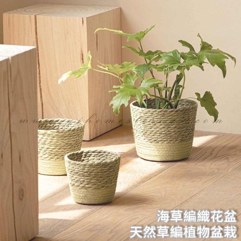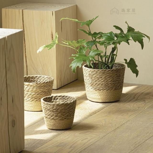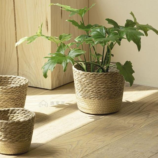逸家居 天然海草編織花盆-中款北歐風 藤編植物綠植 套盆 家居 裝飾 花器 花籃 收納筐 大花籃