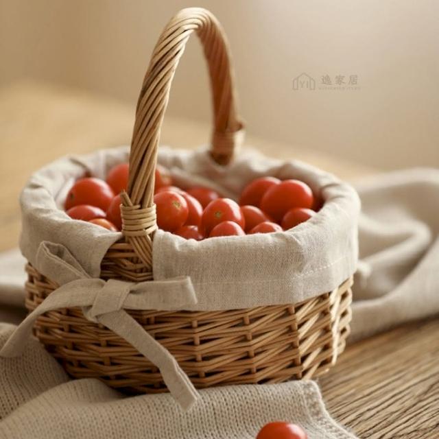 逸家居 柳編小竹籃花籃迷你小收納籃 編織籃 野餐籃 手工藤編籃子 手提籃 ins風 鄉村