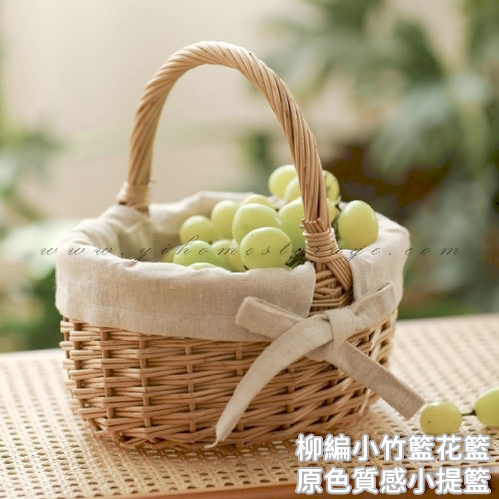 逸家居 柳編小竹籃花籃迷你小收納籃 編織籃 野餐籃 手工藤編籃子 手提籃 ins風 鄉村