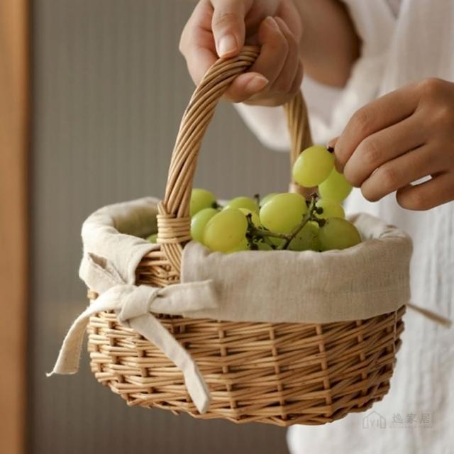 逸家居 柳編小竹籃花籃迷你小收納籃 編織籃 野餐籃 手工藤編籃子 手提籃 ins風 鄉村